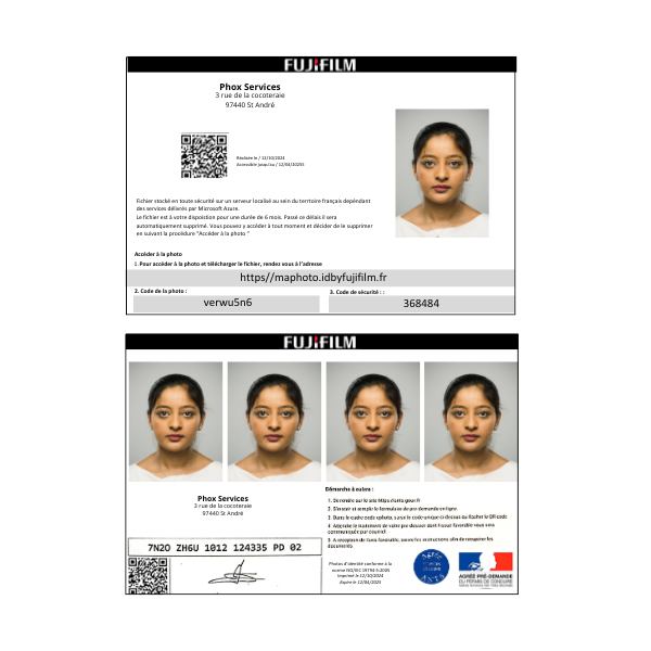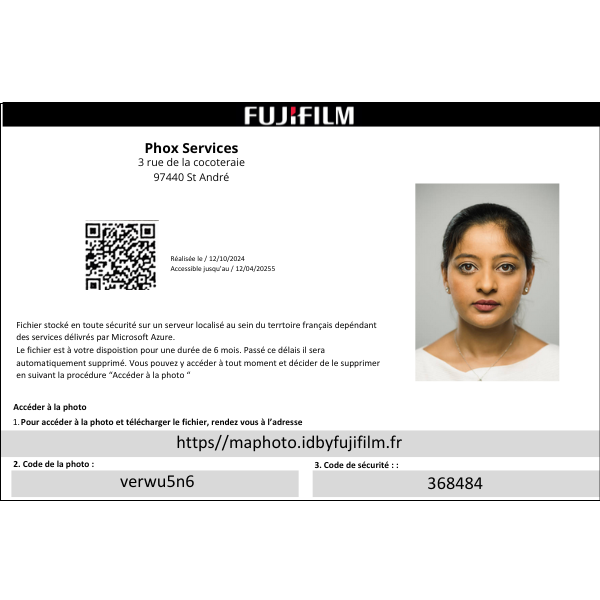 Photo téléchargeable sur le cloud Fujifilm, conforme aux normes des titres identités